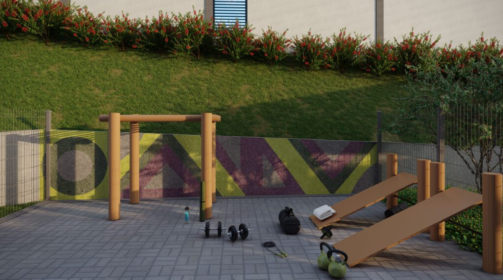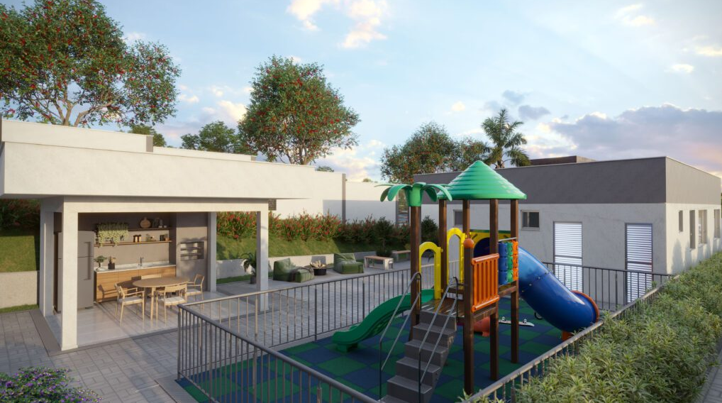 O condomínio conta com torre única, 2 elevadores e uma área de lazer completa, salão de festas, espaço gourmet, playground, espaço fitness, redário, praça de convivência, praça das jabuticabeiras e pomar.